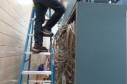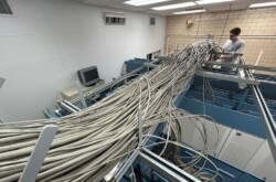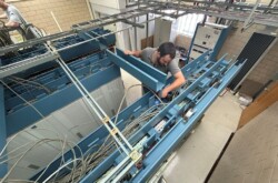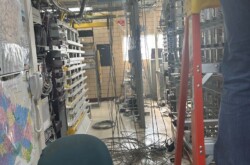 These pictures tell the story better than words. We basically had to undo everything that went into making this switch work. We had to dismantle all the cabling, unhook all the cabinets, and load everything on a truck. There were three rows and 17 cabinets in all. Not only that, we also had to box up a lot of spare 5ESS parts that were no longer needed by this telco. We started on a Wednesday, and by the following Monday it was all loaded onto a truck.