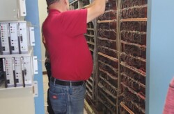 On June 1st, I showed up to this small telco and met Dylan, his father Marcos, and several of his friends to help dismantle the switch and prepare it to be loaded onto a truck. One of his friends, Phil McCarter, is known to telephone switch collectors. He has preserved several electro-mechanical switching systems and has made YouTube videos on his efforts. He is also a retired Telephone Central Office technician, and that’s where his expertise really helped out with the careful de-cabling and removal of the 5ESS from this small central office. We also had Joe Z, who performed a similar dismantling of a DMS-100 (the SL-100 PBX version) a couple of years previous.